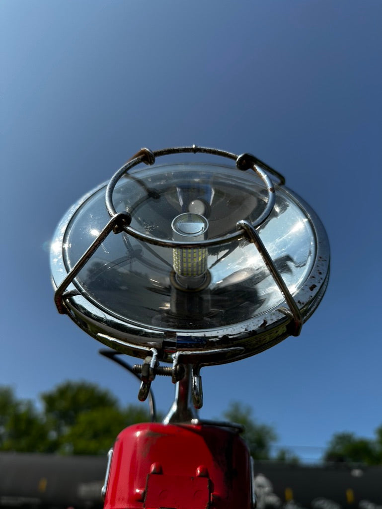** Big Beam lanterns featured a variety of logo's throughout the years. We have made the logo type selectable, but simply can't make an entry for every unit we stock. We individually source every vintage lamp to our liking--making sure each one has desirable wear and rust markings and no damage that would render it inoperable. When fulfilling your order, we will choose one at random with the selected logo. If you want to select a specific lamp seen in the photos, please message us first or otherwise include these instructions in a message with your order.